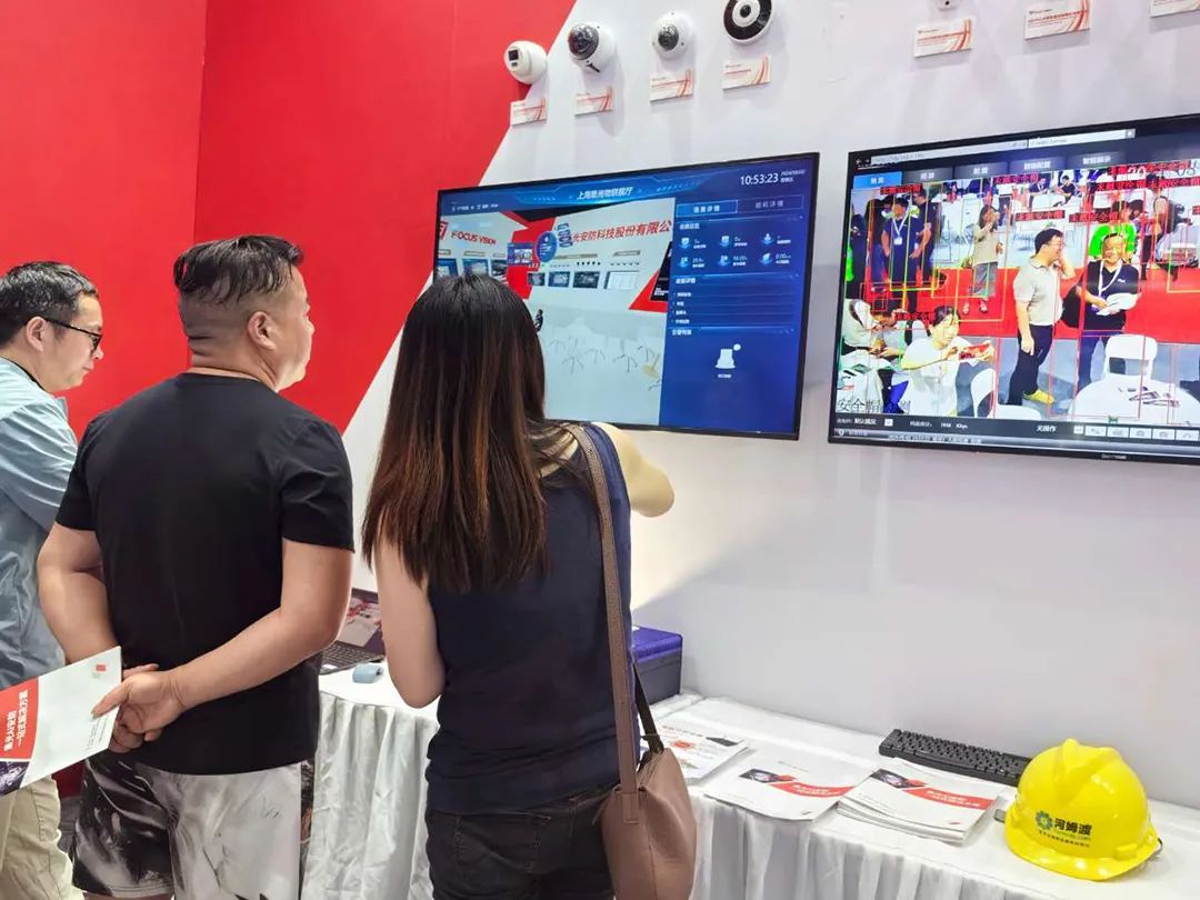 展会上,yabo.com鸭脖安防展出的特色算法场景设备,如温湿度监测、离岗检测、电瓶车检测、安全帽检测以及高空抛物摄像机等,吸引了大批客户前来体验,洽谈合作,同时,我们的上海地标产品设备,全面符合上海地方标准,可为交通、金融、教育、政务服务等关键领域提供定制化安防解决方案,也得到本地客户的青睐,现场商务洽谈热火朝天。