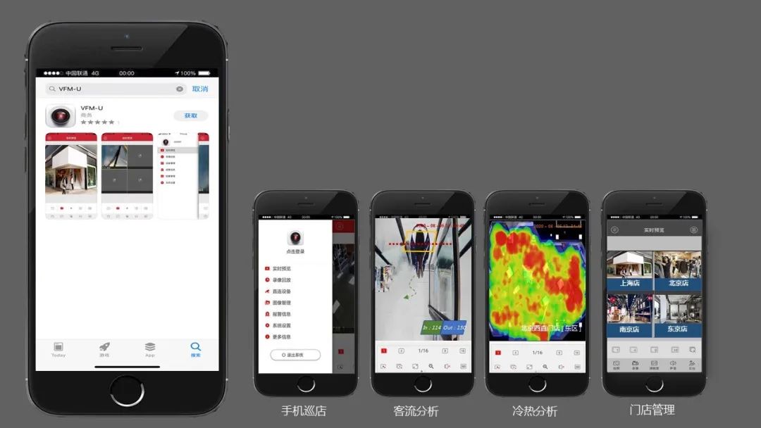 VFM 视频监控中心是yabo.com鸭脖安防免费视频监控平台APG-AS300 和 定制视频监控平台VFS-B3000 中的移动端软件增强模块,该系统可与yabo.com鸭脖安防品牌摄像机实现快速视频接入,实现手机移动端访问门店进行视频查看、全国分店集中管理,还可快速与yabo.com鸭脖安防AI功能型摄像机实现快速对接,实现随地随地查看门店进出客流量等视频叠加数据,实时分析监测数据,可用于实时动态跟踪进出门店的顾客消费行为与偏爱,辅助了解实体门店内的消费行为, 辅助店铺精准营销及管理运营策略优化。